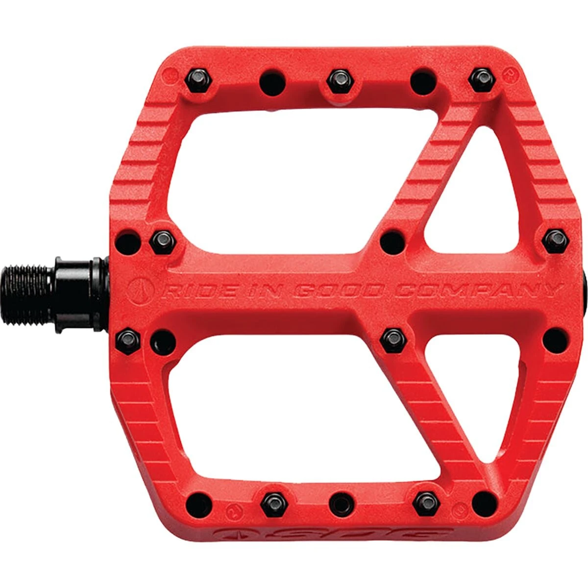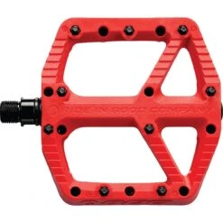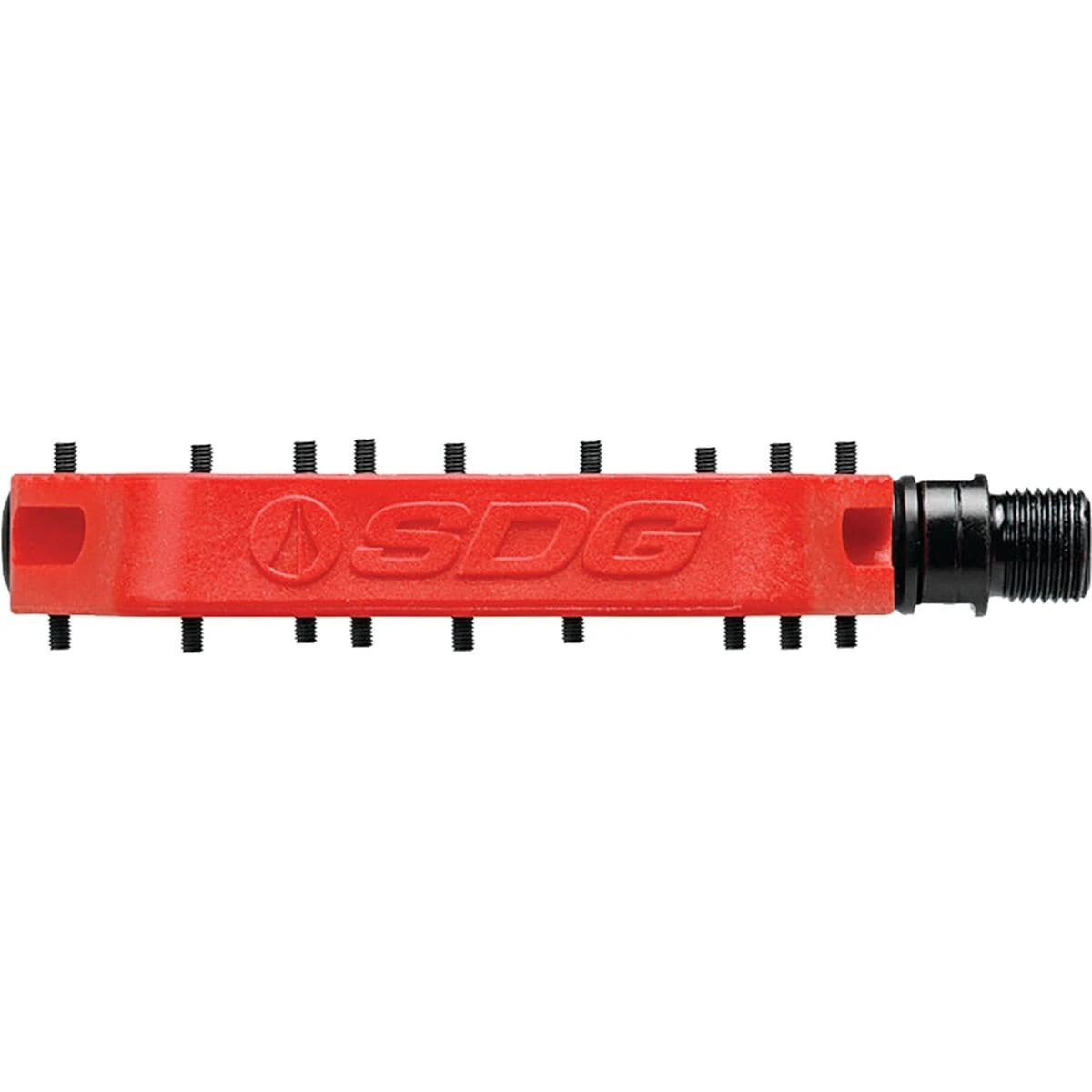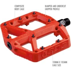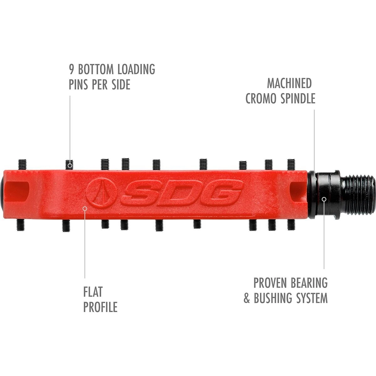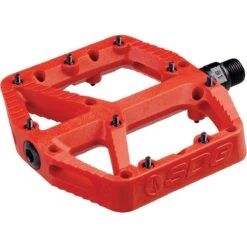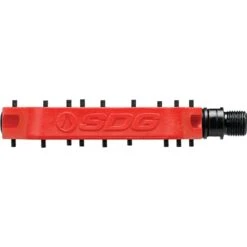 Flat mountain bike pedals are great, but having your foot slip off of the pedal when you are climbing up a difficult trail flat out sucks. With the SDG Components Comp Pedals, the main focus falls on creating the grippiest pedal available. The flat pedal is designed with a larger base area to provide better pedal control, shaped with a ramped and undercut gripper profile for enhanced traction, and topped off with 9 bottom loading pins per side to ensure your shoes stay on the pedals. The Comp Pedals are also built with durability in mind, using the easily replaceable bearing and brushing system with a CroMo spindle.