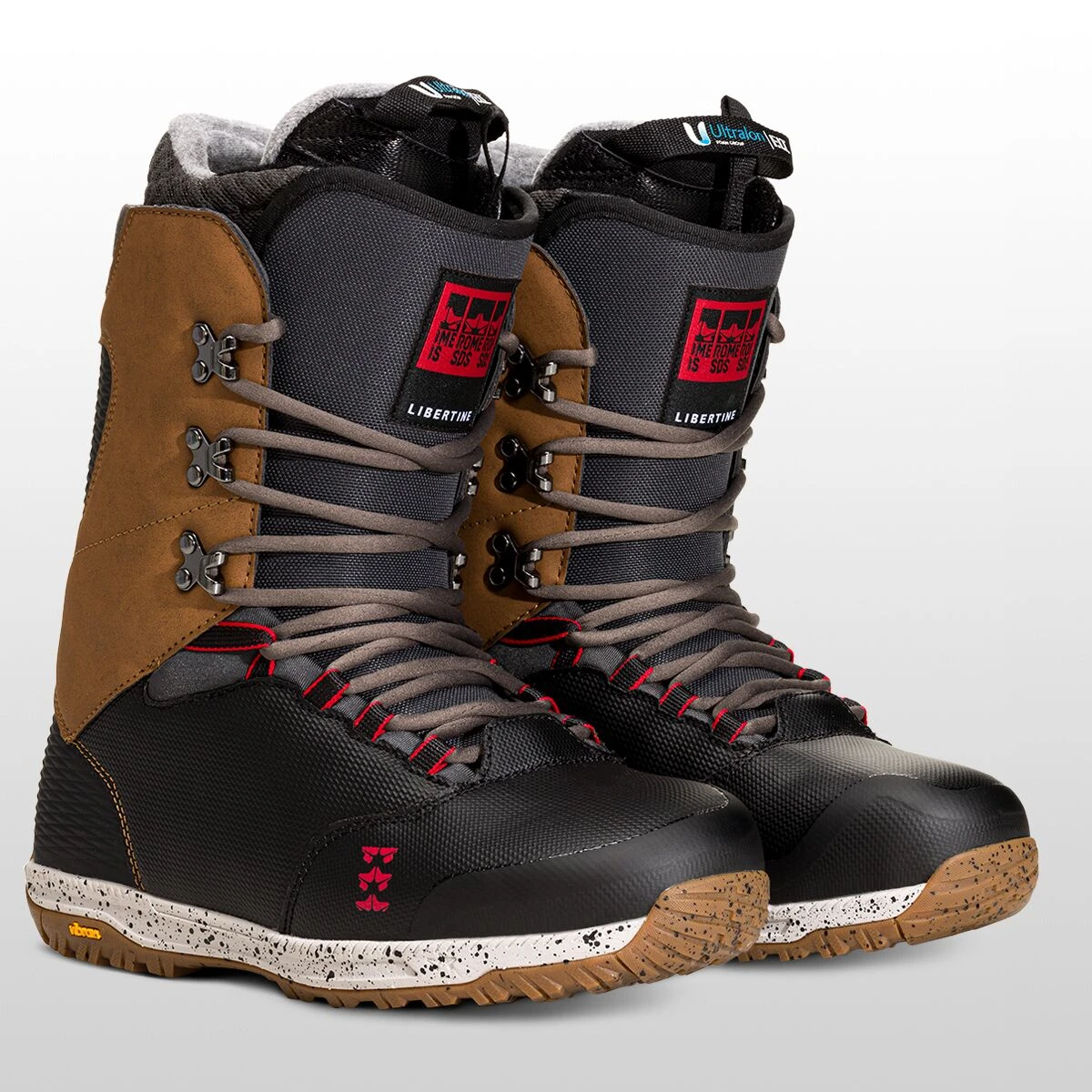 The Libertine Lace Snowboard Boot is Rome’s premium pick for all-mountain riding, complete with an old-school lacing system. But the throwback design doesn’t lack the tech we need for traversing mixed terrain in and out of the resort. Its supportive mid-stiff flex keeps us in control for deep snow days and carving groomers. And its snug Ultralon F.I.T. liner offers even more support, resisting pack-out, flexing comfortably at the ankle, and providing heat-moldability for a perfect fit.