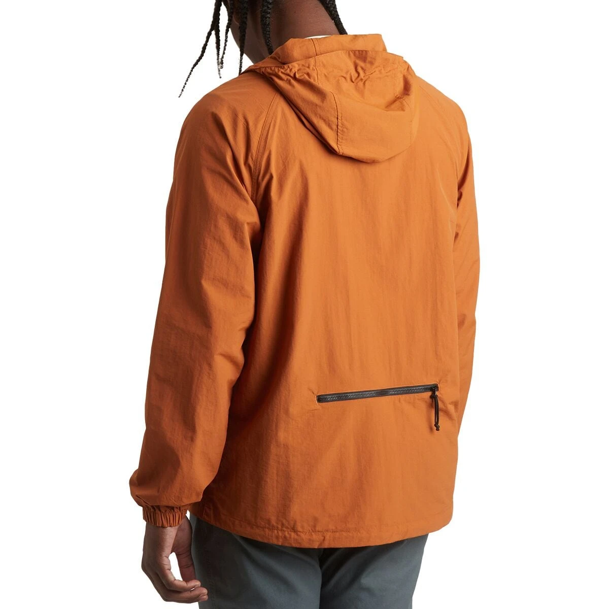 - Drawstring hood with leather fobs for added flair